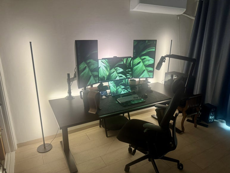 작업을 하며 양쪽 스탠드 조명과 책상 뒷편으로 라인 조명까지 설치하며 완성해보았습니다.