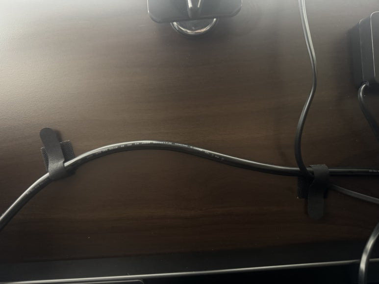 저의 책상은 모션데스크이기 때문에, 책상 상하 이동에 따라 전원선의 간섭이 최대한 없도록